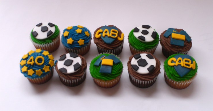Hoy comparto con ustedes las imágenes de las últimas entregas. Unos cupcakes del Boca Juniors para el cumple de un amigo de Laura, quien quedó muy contenta con el resultado y me contó que fueron un hit. Tanto que, muy amablemente me ha recomendado a varios de sus amigos y conocidos. ¡Muchas gracias Laura!