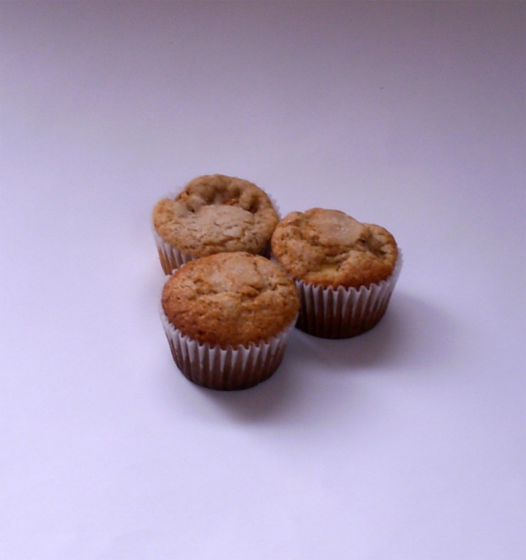 Y finalmente les comparto una foto de los nuevos favoritos de mi esposo, muffins de manzana y canela, suaves y esponjosos pastelitos, perfumados con canela y con trocitos de manzana.