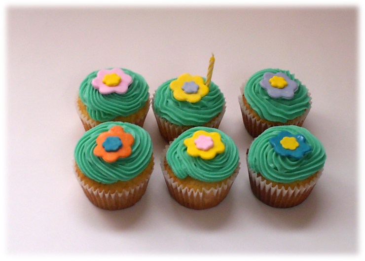 Hoy comparto con ustedes las fotos de unos cupcakes de cumpleaños que me encargó mi vecina Sandra para una compañera de yoga, una caja por 6 cupcakes hechos especialmente para cada invitado. Y también otros para el cumpleaños de otra vecina, no nos conocemos pero su novio me encontró por Google y me llamó para encargarme unos cupcakes para ella y allí descubrimos que vivimos en el mismo edificio. Aprovecho para mostrarles unas galletas de mariposas y flores.