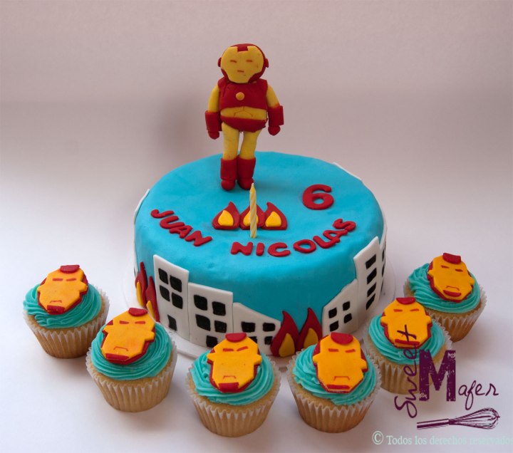 Esta torta con cupcakes de Iron man fue para Juan Nicolás, que cumpliá 6 años.