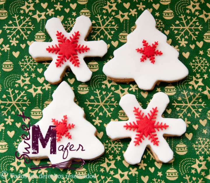 Galletas snowflakes y árboles de navidad.