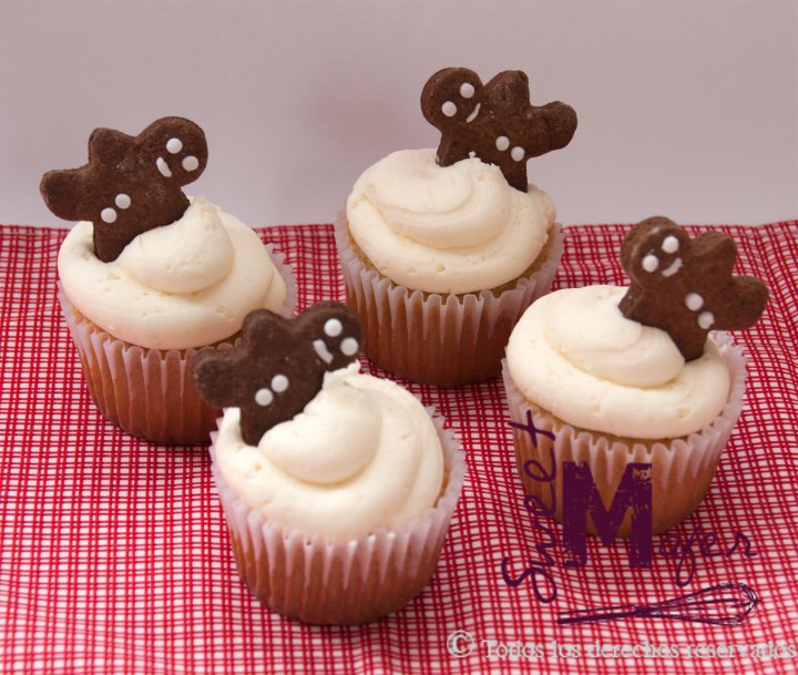 Cupcakes de vainilla con muñecos de galleta de jengibre, disponible en caka por 2, 4, 6 o 9 unidades.