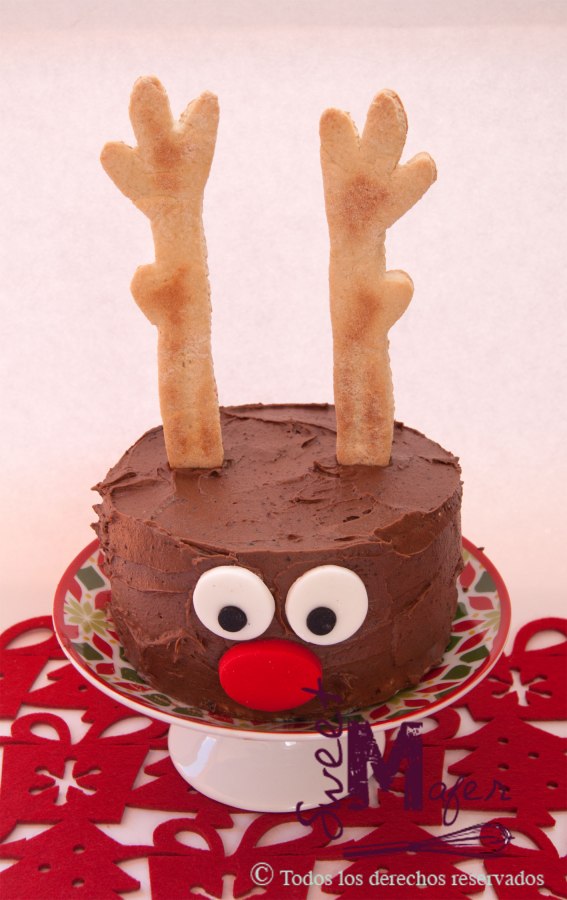 Torta rústica de reno, con cubierta de chocolate y cuernos de galleta. Disponible en masas de chocolate, marmolado o vainilla, de 6 o 10 porciones.