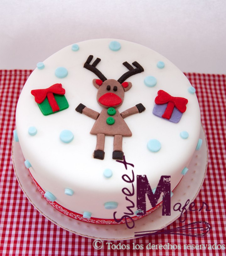 Torta con renito y regalos, disponible en cake negro de navidad, vainilla, chocolate o marmolada.