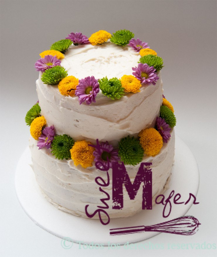 La mamá de Carolina cumplió años hace unos días y sus hijas le organizaron una reunión familiar. Me encargaron dos tortas rústicas a juego, una de chocolate y una de almendra y naranja, decoramos las dos con flores naturales en tonos amarillo, lila y verde. Quedaron muy lindas y sobre todo muy ricas.