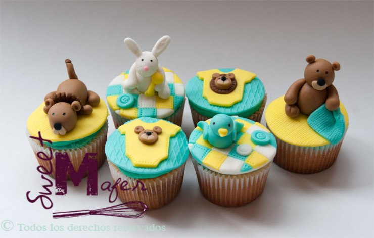 Hay papás que no quieren saber si van a tener niño o niña hasta el final o que esperan la sorpresa cuando nace el bebé. Cuando sus amigos y familiares les organizan un baby shower o una reunión para celebrar la llegada del bebé, en ocasiones, no saben qué motivos usar o cómo decorar. Aquí les presentamos una tierna idea con un león, un conejo, un oso y un pajarito, y bodies de animales, puestos sobre colchas de retazos o tapitas de pastillaje texturizado, hechos sobre cupcakes de almendra y naranja, perfectos para unas onces.