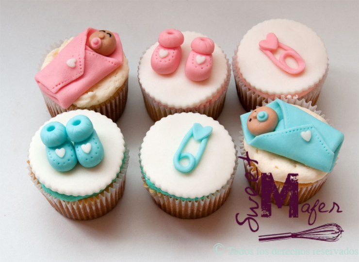 Hoy les presentamos otra idea de cupcakes para baby shower, hemos hecho unos en rosa y otros en azul pastel, para que vean opciones para niño y niña. Se trata de un bebé envuelto en su cobijita, unos patines y un gancho nodriza, diseños muy tiernos, que se adaptan a cualquier tipo de decoración y que no pasan nunca de moda. Están hechos sobre cupcakes de naranja.