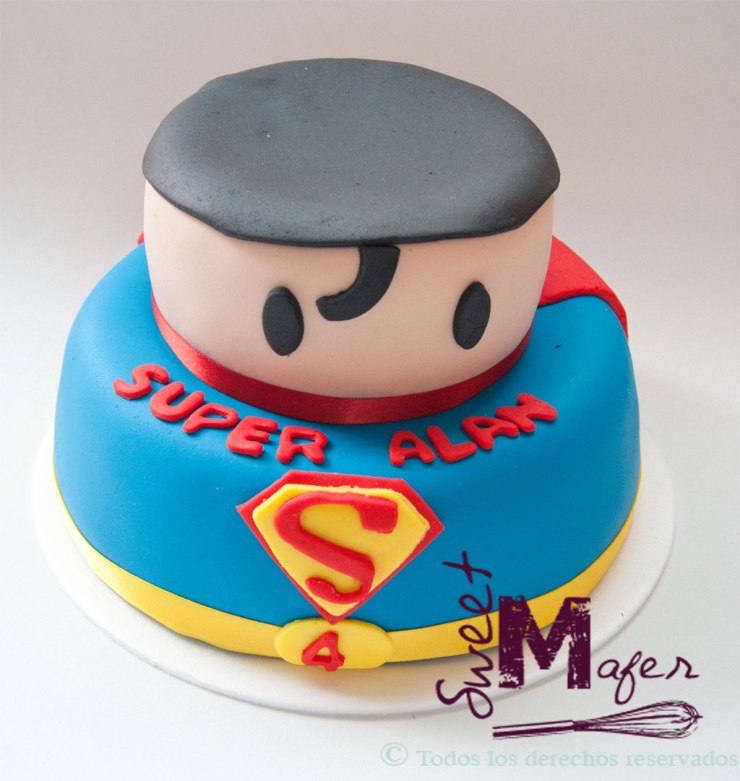 Alan es hijo de Emer a quien conozco hace más de 10 años, nos conocimos cuando yo trabajaba en una ONG que ayudaba a artesanos a comercializar sus productos en el exterior, Emer viene de una familia de artesanos expertos en la cañaflecha. Alan cumplió 4 años y su papá me encargó una torta de Super man, antes le había hecho una de Toy Story y también le hice varias a sus hermanita Sofía. Hicimos una torta de vainilla para 30 personas, para la celebración con su familia y amigos.