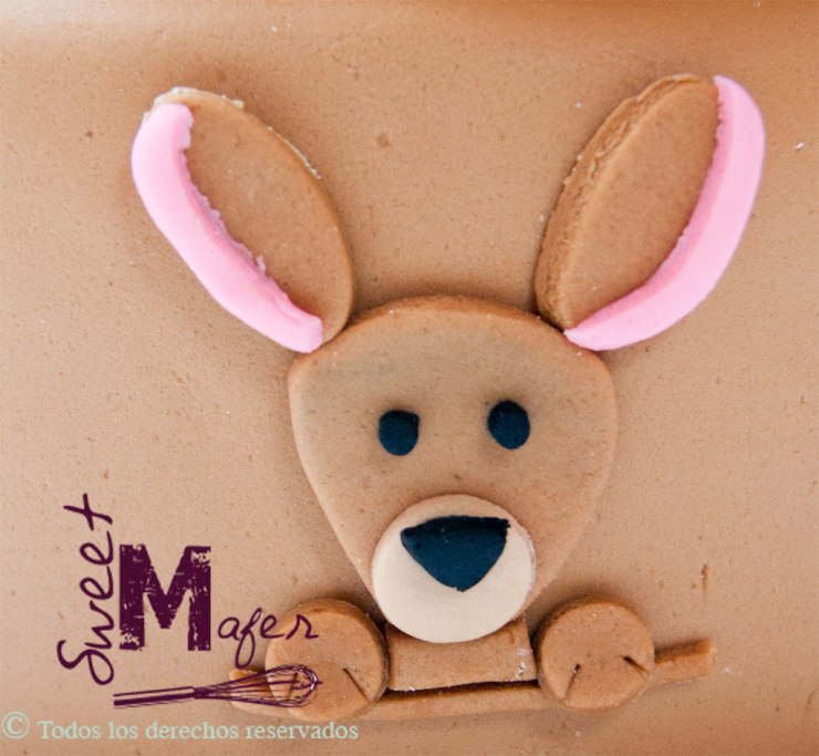 Hoy les presentamos una opción muy divertida y tierna para un baby shower, se trata de una torta de 16 porciones, de vainilla con mora, decorada como una cangura, con su bebé en la bolsa. Si quieres sorprender a alguna amiga que está embarazada o que acaba de tener bebé, seguro esta torta le encantará.