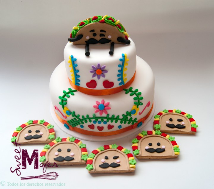 Set de galletas y torta mexicanas con tacos