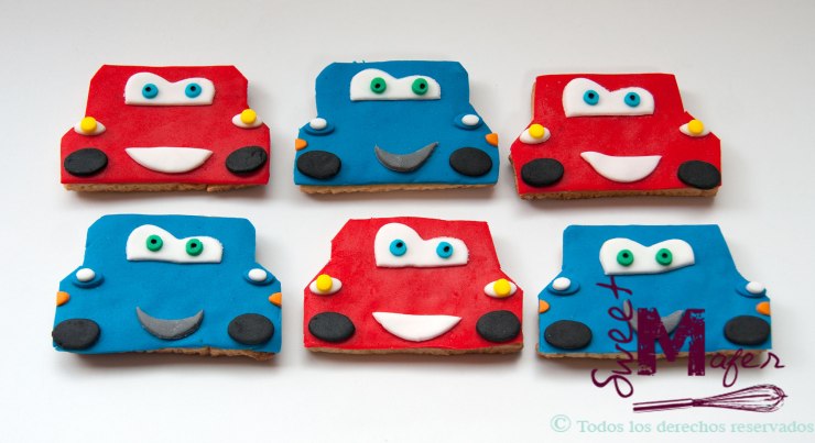 Para la celebración del cumple de Juan Martín en el jardín, su mamá, Paola, me encargó estas galletas de Cars, que le gustaron mucho. Paola fue mi compañera de trabajo hace muchos años cuando aún me desempeñaba en el mundo de la comunicación corporativa y no es la primera vez que hago cosas para su chiquitín, también hice una torta del Arca de Noé para su primer cumpleaños.
