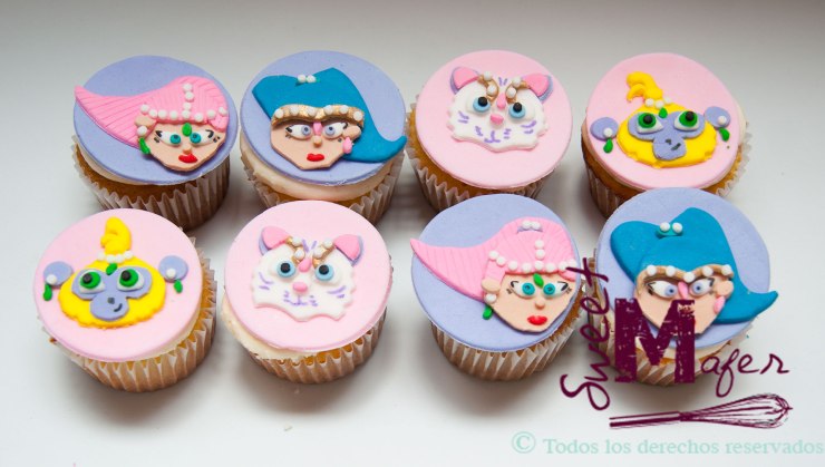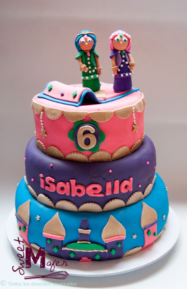 Isabella cumplió 6 y su mamá, María Claudia le organizó una gran fiesta de Shimmer y Shine. Para ella hicimos una torta de chocolate de 3 pisos para 60, otra para 20 de 1 piso, 50 cupcakes decorados con las caras de los personajes, 50 galletas decoradas a juego, 100 merenguitos, 100 alfajores, 100 galletas de nido y 60 bolitas de brownie.