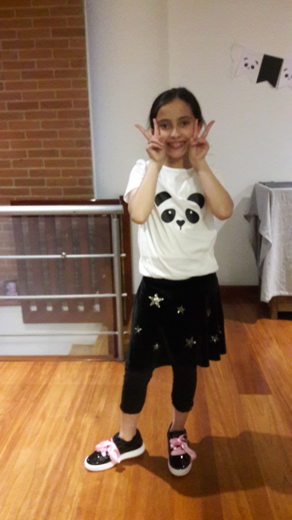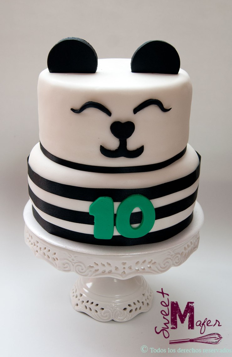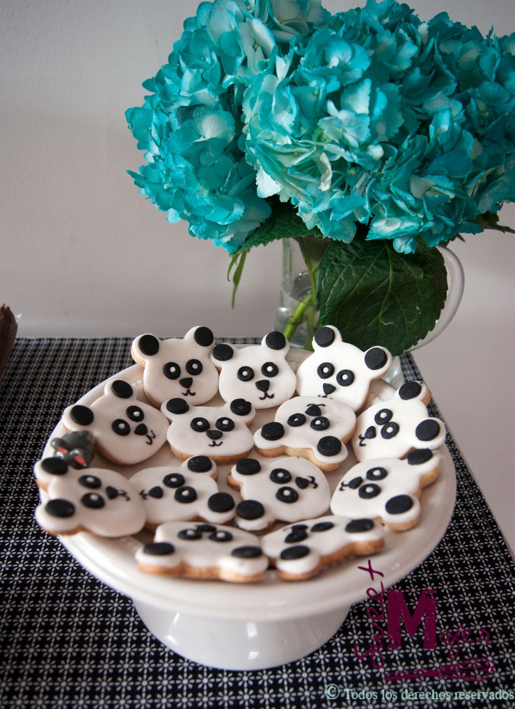 Mi hija Antonia cumplió 10 años el mes pasado, para celebrarlo invitamos a un grupo de amiguitas a comer pizza y luego a casa a jugar y soplar las velitas. Este año ella eligió el tema de pandas y diseñó su propia torta. Les comparto una imagen del diseño y del resultado de la torta, así como una de la mesita de dulces y de las galletas.