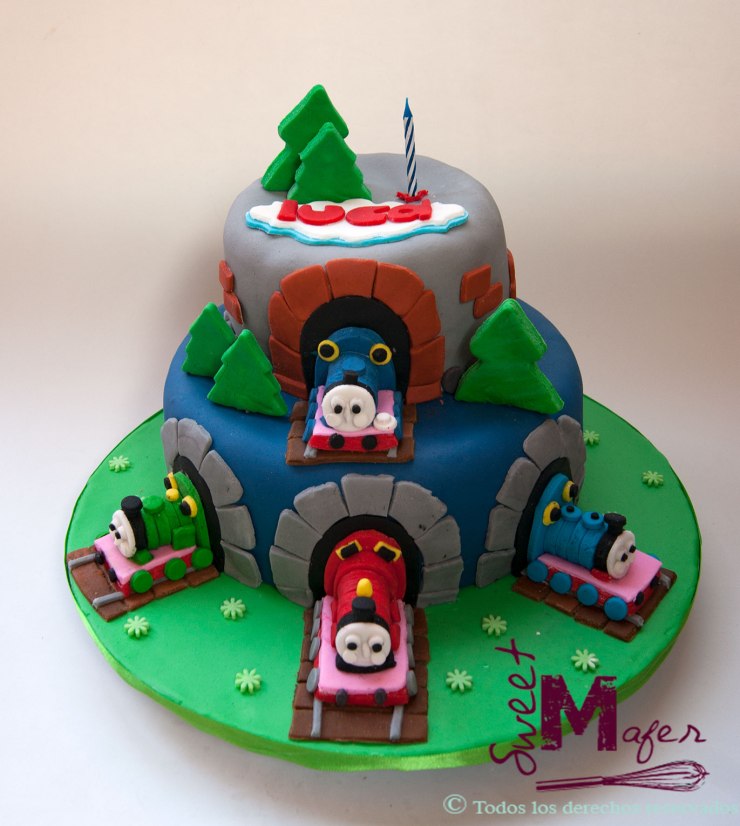 Luca cumplió 3 años y este año, por tercera vez, su mamá, Carolina, nos llamó para hacerle una torta de cumpleaños. Este año Luca está fascinado con los trenes y la hicimos esta linda torta de Thomas and friends, en masa marmolada y para 25 personas. Carolina escribió para agradecernos y nos mandó videos de Luca muy emocionado con su torta.