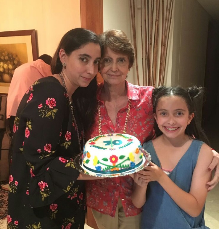 El mes pasado mi mamá cumplió 70 años, para celebrarlo me escapé a Cali con mi hija Antonia, le llegamos de sorpresa y le organizamos una reunión con sus amigas. Le hice una torta negra, decorada especialmente para la ocasión, siguiendo la receta de la tía Pacha, tía de mi mamá, quién fue a la celebración y le dio su aprobación a mi torta, cosa que fue muy importante para mí.