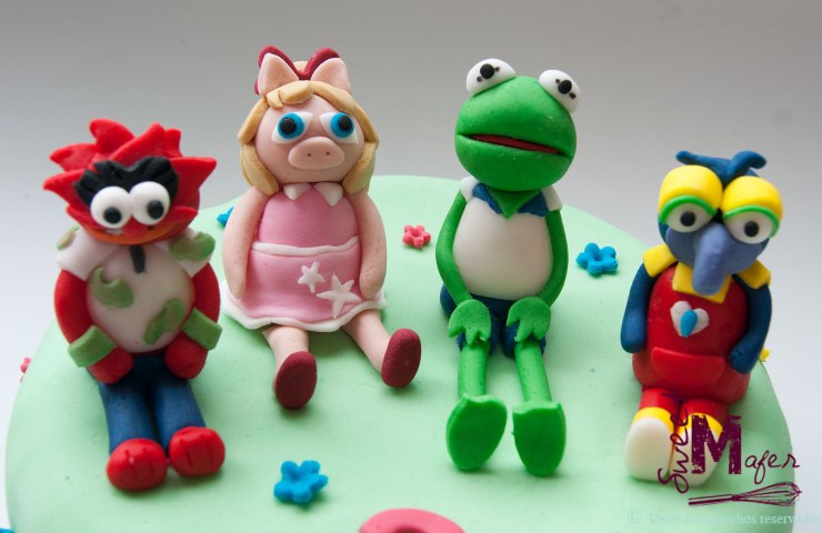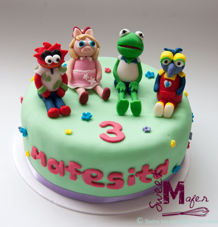 María Fernanda cumplió 3 años y su mamá, Johana, me encargó esta torta con sus personajes favoritos: de los Muppets Babies. Hicimos una torta marmolada para 15 personas, decorada en verde con flores y con Miss Piggy, la rana René, Animal y Gonzo sentados sobre ella. A Johana le gustó mucho.