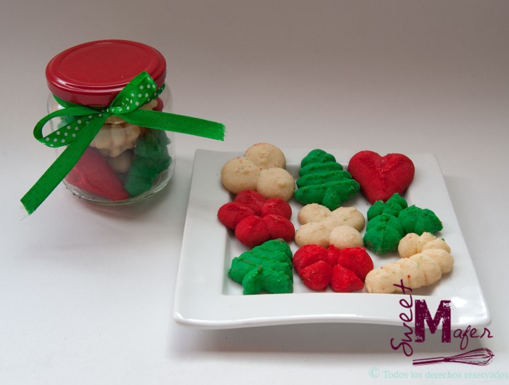Este año traemos de nuevo las galletitas de prensa, unas ricas y suaves galletas de mantequilla armadas con ayuda de una prensa de galletas, empacadas en frascos de vidrio, ideales para un detallito de navidad y a un precio insuperable. En esta ocasión hemos hecho unas en rojo y otras en verde para darles un toque más alegre y navideño.