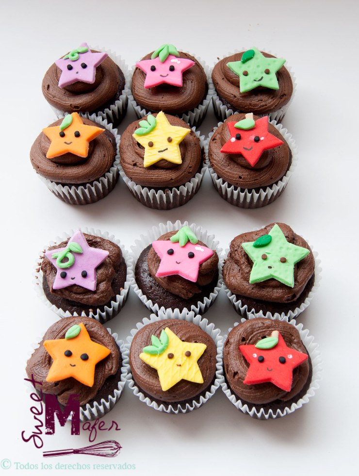 Estos tiernos cupcakes de frutas kawaii, hechas sobre estrellitas, los hice recientemente en una clase con niñas, empecé con varios grupos de chicas compañeras de mi hija y hemos dado clase a algunas hijas de clientas, o a parejas de mamá e hija. En esta ocasión, hicimos una clase de decoraciones kawaii, hicimos cupcakes son frutas hechas sobre estrellas y galletas en forma de estrella decoradas con distintos personajes. La clase fue un hit, las niñas estuvieron felices.