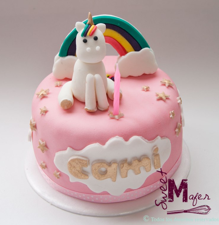 María Camila es hija de Manuel, cuando estaba más chiquita le hice varias tortas y cupcakes de cumpleaños, este año Manuel me pidió una torta pequeñita para la celebración en casa del cumpleaños de su princesa. Hicimos una torta de chocolate para 6 personas, decorada en rosado, con un unicornio y un arcoiris. ¡Les gustó mucho!