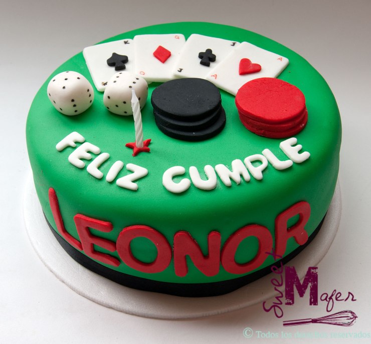 Torta de casino Posted on mayo 7, 2019marzo 30, 2019 by sweetmafer Galdys me encargó esta torta con temática de Casino, con fichas, naipes y dados, para el cumple de su amiga Leonor, era una torta de 15 porciones, en masa de almendra y naranja y me pidieron rellenarla con crema de chocolate. Les gustó mucho. ¿Te gustó? ¡Compártelo!Compartir Haz clic para compartir en X (Se abre en una ventana nueva) X Haz clic para enviar un enlace por correo electrónico a un amigo (Se abre en una ventana nueva) Correo electrónico Haz clic para compartir en Tumblr (Se abre en una ventana nueva) Tumblr Haz clic para compartir en Facebook (Se abre en una ventana nueva) Facebook Haz clic para compartir en Pinterest (Se abre en una ventana nueva) Pinterest Haz clic para compartir en WhatsApp (Se abre en una ventana nueva) WhatsApp Me gusta Cargando... Relacionado
