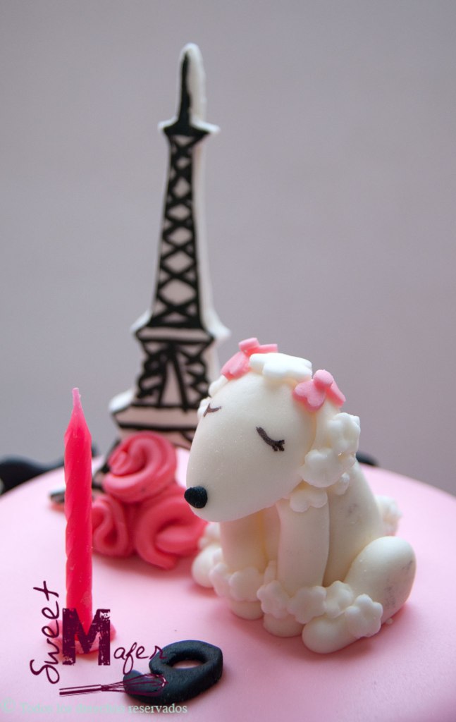 Silvana cumplió 9 años y su mamá, María Claudia, le organizó una fiesta de París. Le hicimos esta linda torta para 30 personas, decorada en tonos rosa, blanco y negro, con un poodle y una torre Eiffel en la parte superior de la misma. Era una torta para 30 personas, marmolada con relleno de chocolate. Hace 2 años le hicimos torta, cupcakes y galletas de Trolls y hace un año, torta, galletas y cupcakes de Gravity Falls.