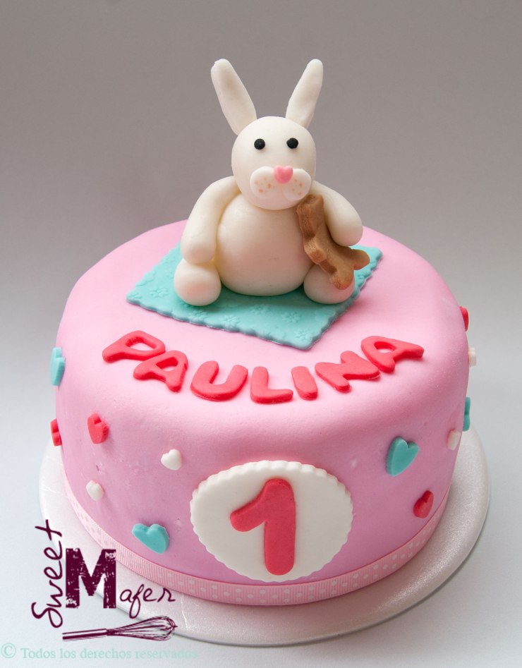 Paulina es la hijita de mis vecinos Lucila y Andrés, hace poco les hice una torta para su baby shower y ahora la princesa de la casa cumplió su primer mes de vida. Les hicimos esta tierna tortica con un conejo abrazando un osito, era una torta marmolada, el sabor preferido de Lucila. ¡Les encantó!