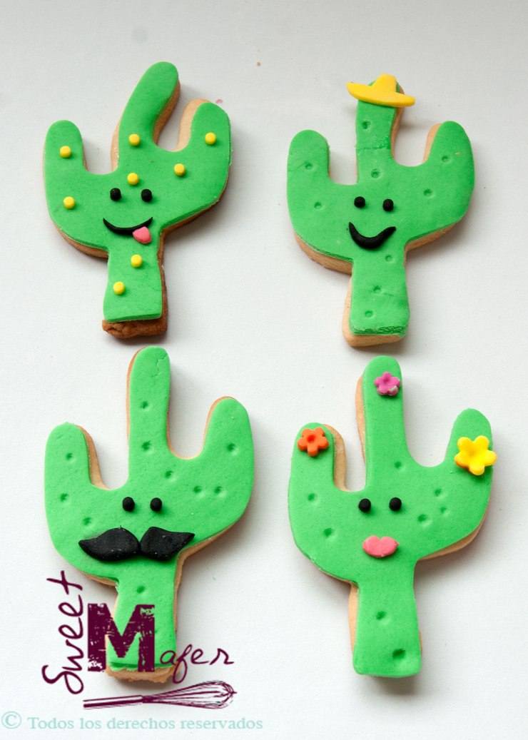 Hoy compartimos esta imagen de unas lindas galletitas en forma de cactus, que hicimos como sorpresas para el cumpleaños de Alicia. Son cactus personalizados con caritas y expresiones distintas, con bigote, sombrero, sacando la lengua y uno muy coqueto con flores. Son cactus muy tiernos y divertidos.