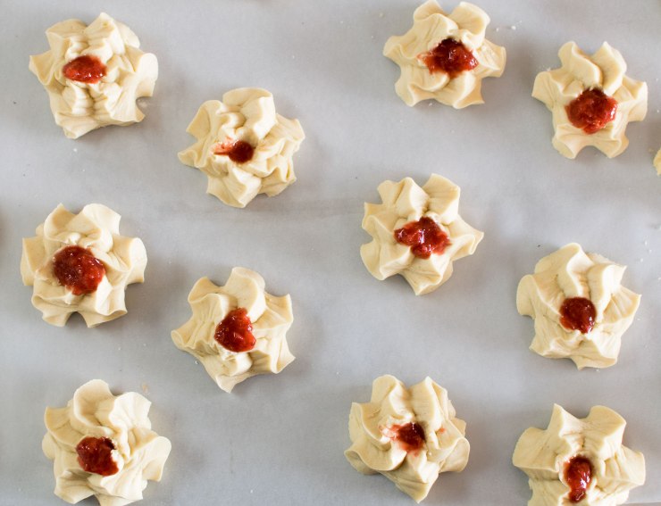 Como ya todos saben, me encantan las galletas y ensayar nuevas recetas. En esta ocasión hice unas galletas de mantequilla, armadas con manga pastelera, con centro de mermelada. Quedaron tostaditas en el borde y suaves en el centro, y con un sabor muy delicado, perfumado con vainilla. En mi casa pasaron la prueba y las seguiremos haciendo!
