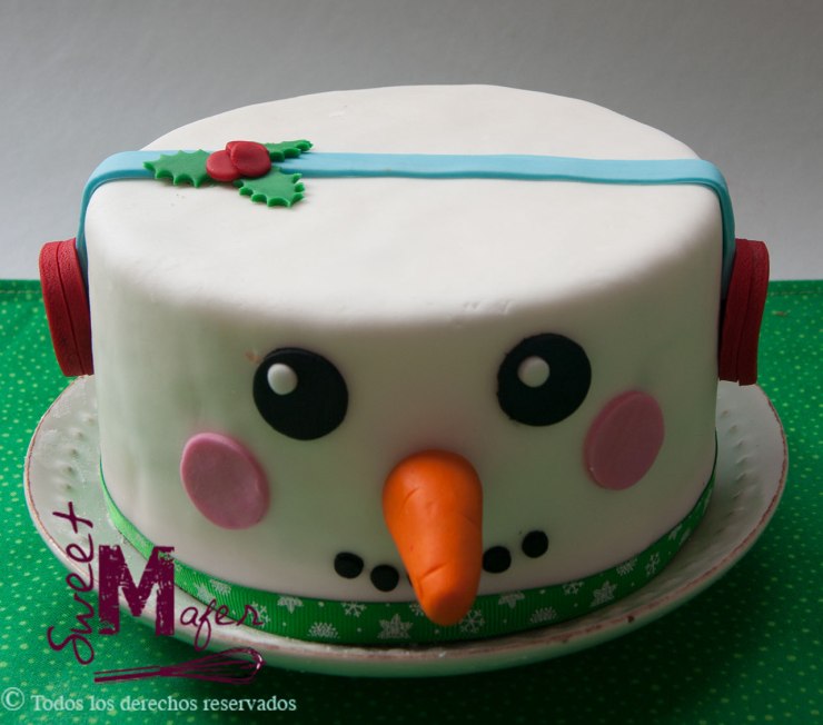 Hoy les presentamos esta tierna torta con la cara de un muñeco de nieve con orejeras y una nariz de zanahoria grande, ideal para regalar a familias con niños, disponible de 6 y 10 porciones, en masas de torta negra de navidad, vainilla, chocolate, vainilla con mora, marmolada o almendra y naranja.