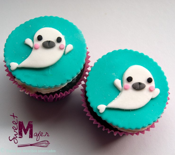 Hoy les presentamos unos cupcakes de foquitas que hicimos para el baby shower de Daniel. Lo hicimos antes de empezar la temporada de cuarentena pero no habíamos podido compartirlo aún. Hicimos 24 cupcakes de vainilla y chocolate decorados en azul y con foquitas blancas.
