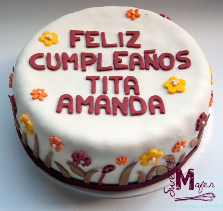 La mamá de María Claudia estaba de visita cuando empezó la cuarentena y debió quedarse en su casa por mucho tiempo. Cumplió años y María Claudia le organizó una pequeña celebración en casa y quiso sorprenderla con una torta negra envinada, que le encanta, hicimos una torta para 15 personas, decorada en tonos tierra, con hojitas y flores.