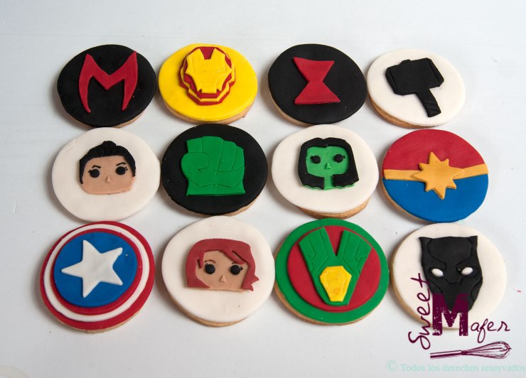 Galletas de súper héroes de Marvel para el cumple de Julieta. ¡Le encantaron!
