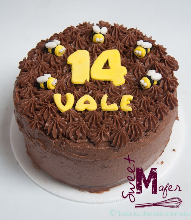 Torta de chocolate con abejitas para el cumple Vale.