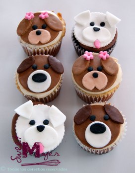 Julieth me encargó estos cupcakes para un amigo suyo que ama estos animalitos. Hicimos 12 cupcakes con caras de perritos de varias razas y huellitas, un siberiano, un beagle, un labrador, un poodle, un bernés de la montaña, un bulldog y un dálmata. ¡Nos encanta hacer estos cupcakes!