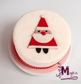 Hoy les proponemos la última torta navideña de esta temporada. Disponible en 6 y 10 porciones, decorada con un papá Noel en forma triangular, se puede hacer en masas de vainilla, chocolate, marmolada, vainilla con capa de mora o arequipe o en cake negro de navidad.