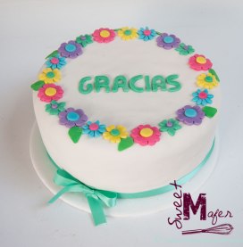 Francisco me encargó esta torta como un detalle de agradecimiento, era una torta de chocolate, decorada con flores y la palabra gracias y le encantó.