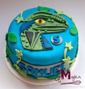 Jerónimo cumplió años y su mamá me pidió esta torta con la cara de un dinosaurio, era una torta de vainilla de 10 porciones y le gustó mucho.