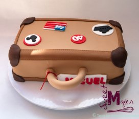 Miguel cumplió 40 años y su esposa, Ana María le organizó una reunión sorpresa con amigos. Además, como regalo de cumple le tenía una invitación a un crucero Disney, por eso me encargó esta torta maleta, decorada con un barco, orejas de Mickey, la bandera de USA y el número 40. Era una torta de vainilla con arequipe para 25 personas y le gustó mucho!