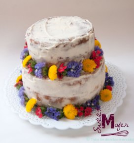Alejandra hizo un almuerzo para celebrar el bautizo de su hijito y me encargó una torta de vainilla con relleno de dulce de leche, que ella me trajo, seminaked, con una cruz y un ángel en la parte superior en tonos azules y blancos. Además le hice unas galletitas de ángeles en tonos a juego con la torta.