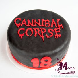 La hija de Alex cumplió 18 y le encanta el grupo musical Cannibal Corpse. Le hicimos una torta de alemdra y naranja para 15 personas, decorada en negro y con las letras del nombre del grupo. ¡Quedó muy contenta con el resultado!