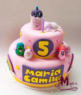 Alicia cumplió 6 y este año quería una torta de Paw Patrol, en años anteriores le hice tortas de cupcakes, Peppa Pig, etc. Alicia es hija de Janet, una compañera mía del colegio. En esta ocasión hicimos una torta marmolada para 25 personas, decorada en blanco y rosado, con huellitas de perro, huesitos y dos perritas de la patrulla canina. A Janet le encantó!