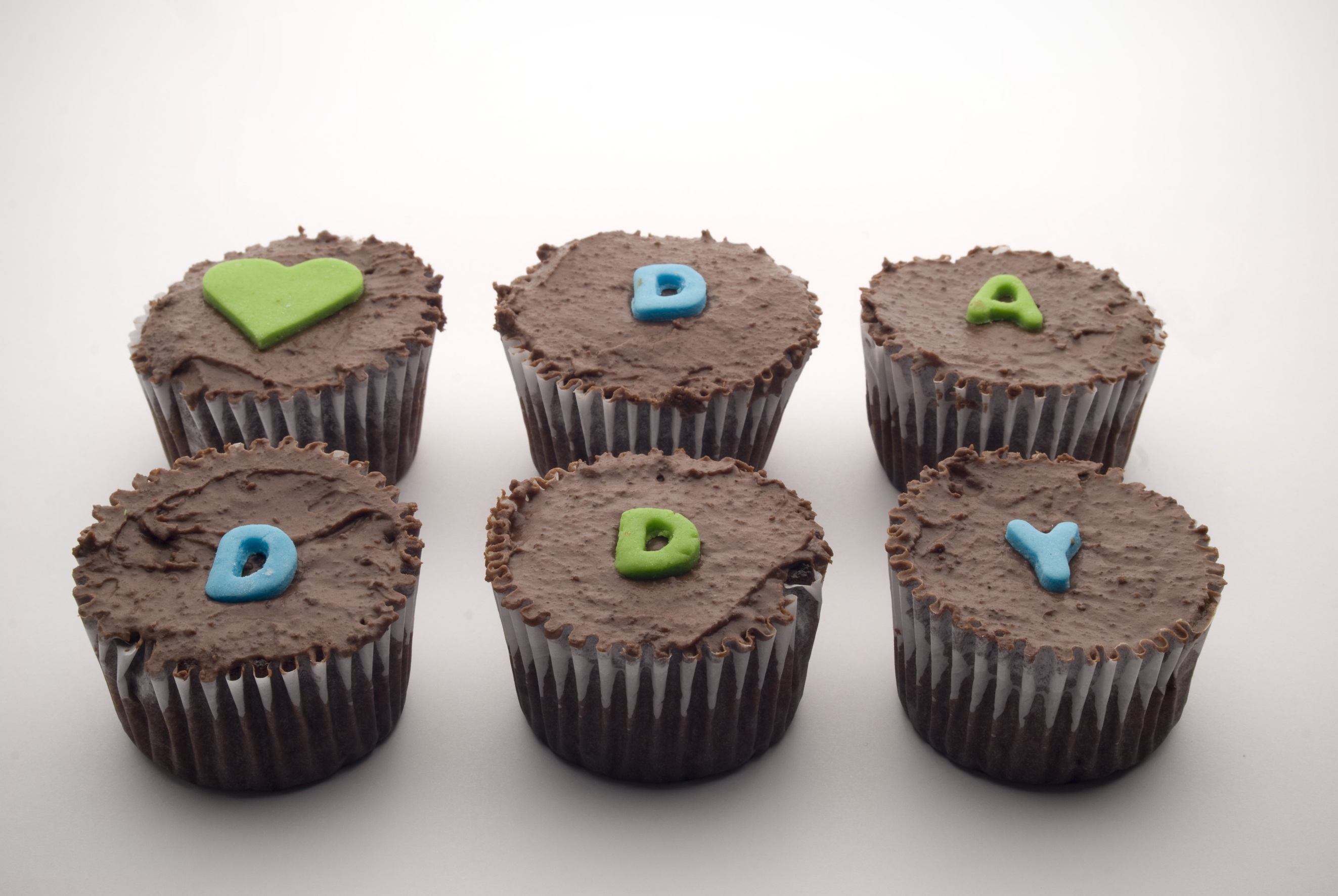 Caja por seis unidades de cupcakes de vainilla con cubierta de mantequilla, decorados con balones de fútbol y la palabra dad. Diseñada especialmente para el día del padre en temporada mundialista. Se puede hacer con otros balones, con el mensaje que quieran y en la cantidad que necesiten.