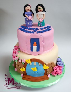 Torta de Encanto para las sobrinitas de Natalia, María Angel y María Paz, torta de chocolate para 16 personas decorada con muñequitas al estilo Sweet Mafer. ¡Les encantó!