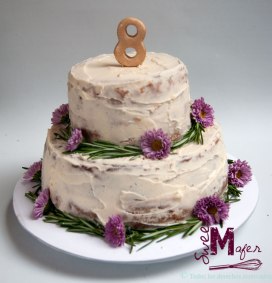 Sara me encargó esta torta para el cumple de su hija, era una tota de vainilla con mora, decorada con crema rústica y flores naturales. ¡Les gustó mucho!