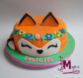 Torta marmolada para 15 personas, decorada como una linda zorrita para Emilia. ¡Les gustó mucho!