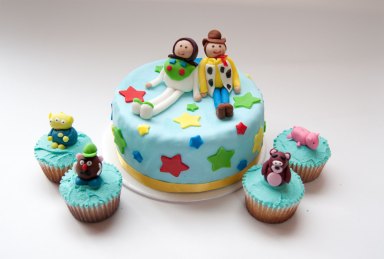 Esta semana entregué cupcakes de Bugs Bunny, torta y cupcakes de Toy Story y cupcakes de Pegaso, el personaje de Hércules la peli de Disney. Les comparto imágenes.