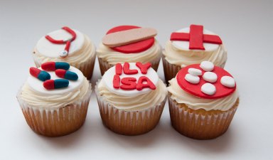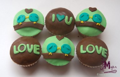 En un rato le entrego a Laura, una paraguaya muy simpática que vive aquí, una torta con cupcakes a juego para su esposo en su quinto aniversario. Además, Paola, una vecina, me encargó una torta para su sobrino de Bruno y otra para unos amigos que están de aniversario de casados. Y Daniel me encargó unos de chocolate con mensaje de I love you para alguien que quiere mucho.