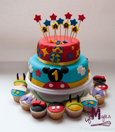 Nuevos modelos de torta de la casa de Mickey, cupcakes de Minnie, Mickey, Daisy, Donald y Pluto para el primer año de Sarita.