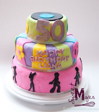 Esta fue una torta disco años 70 para la celebración de unos 50 años.