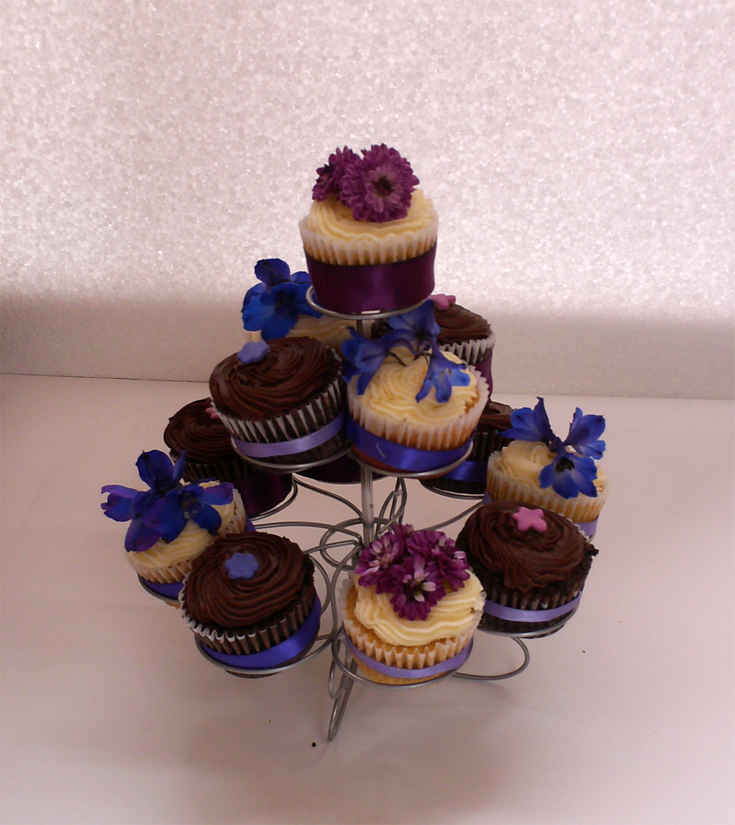Entro un momento para mostrarles cómo quedaron los cupcakes para cumpleaños que entregué ayer. Eran para una amiga de mi esposo, para el cumple de unas primas suyas. También le alquilé el stand para que pudiera exhibirlos mejor.